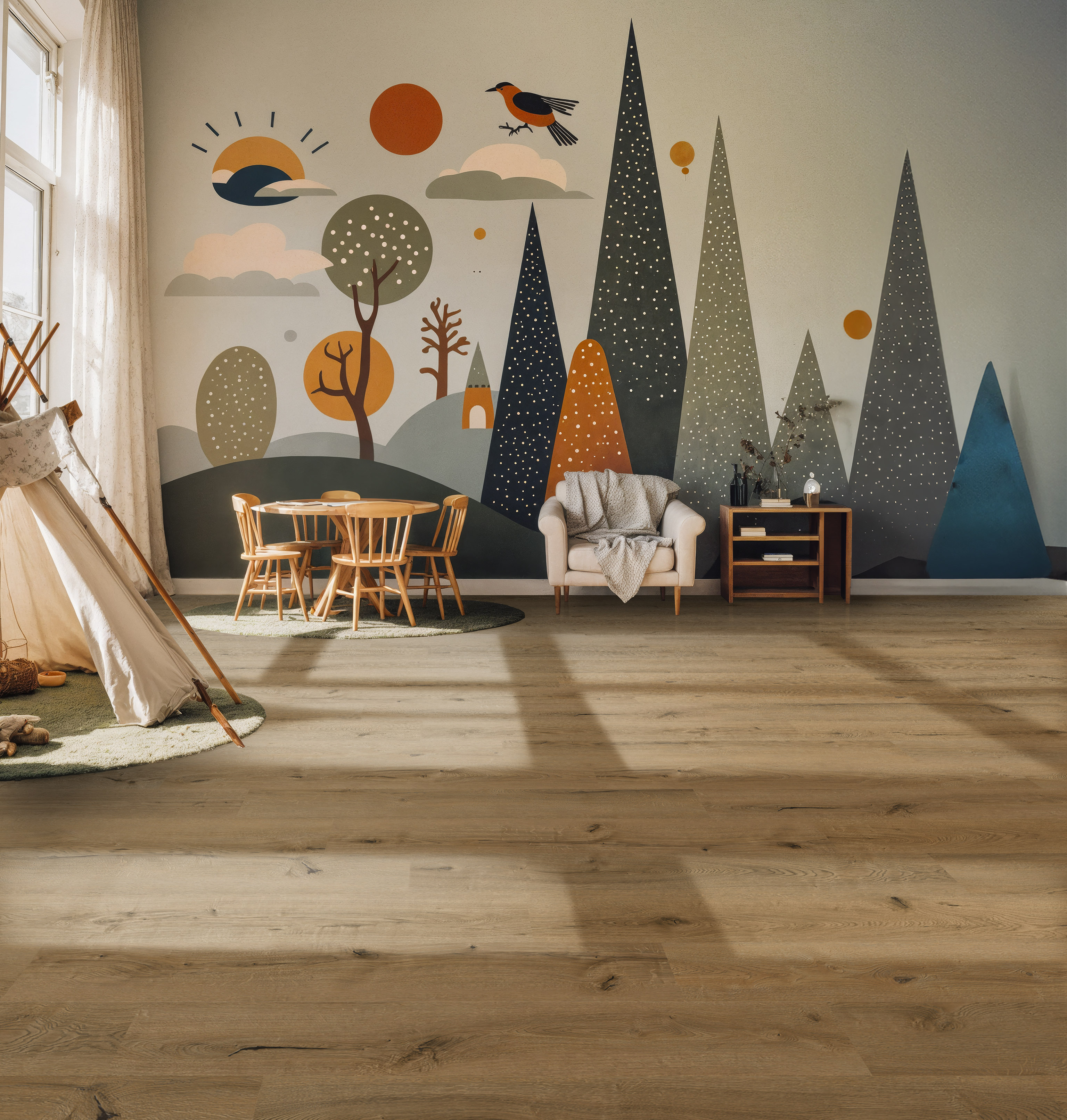 Et funksjonelt og varig gulv med moderne uttrykk.
