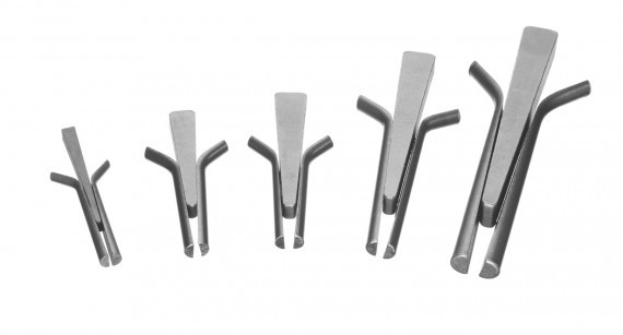 - Sett kilene i hullene. Pass på at "ørene" står mot den retningen du vil at steinen skal deles.