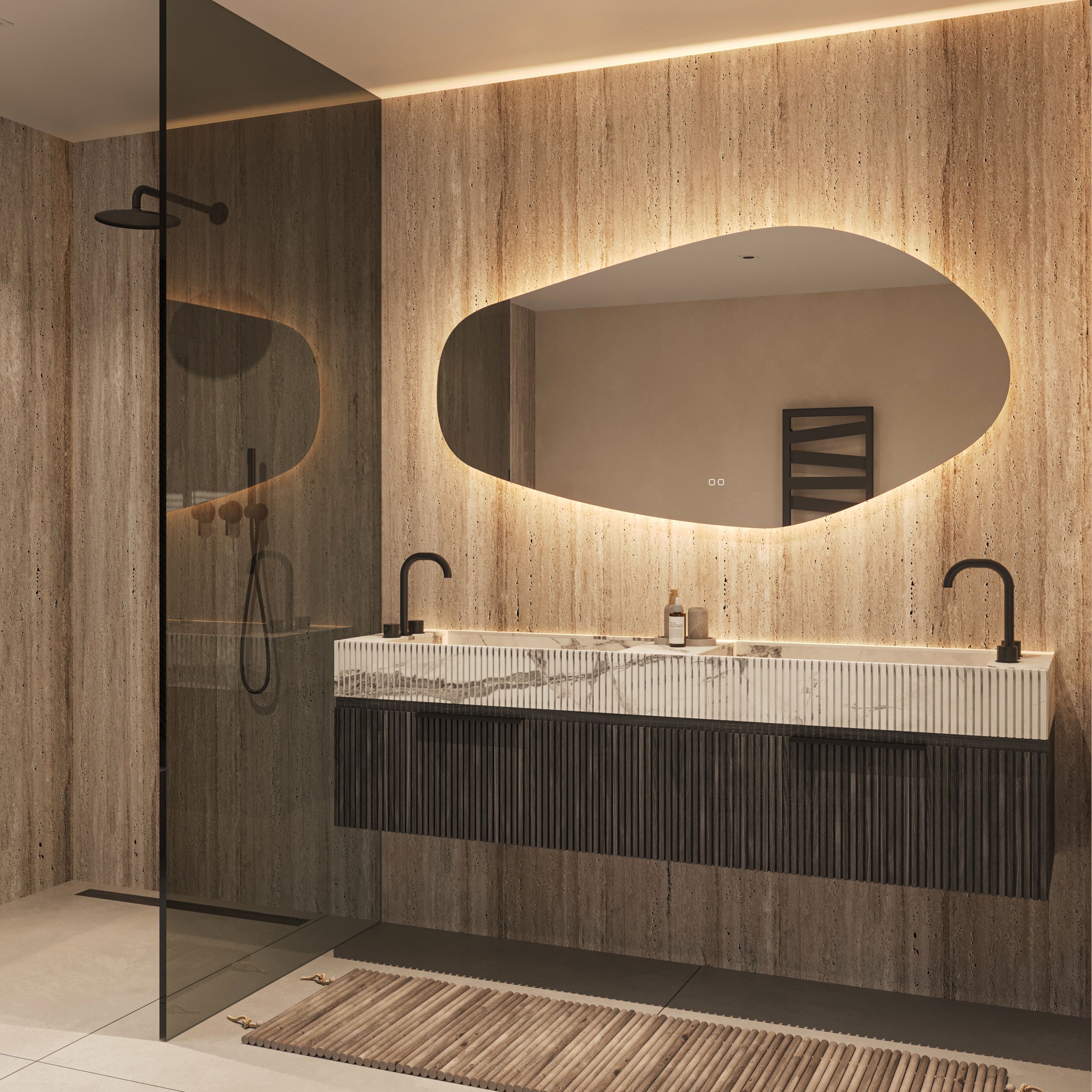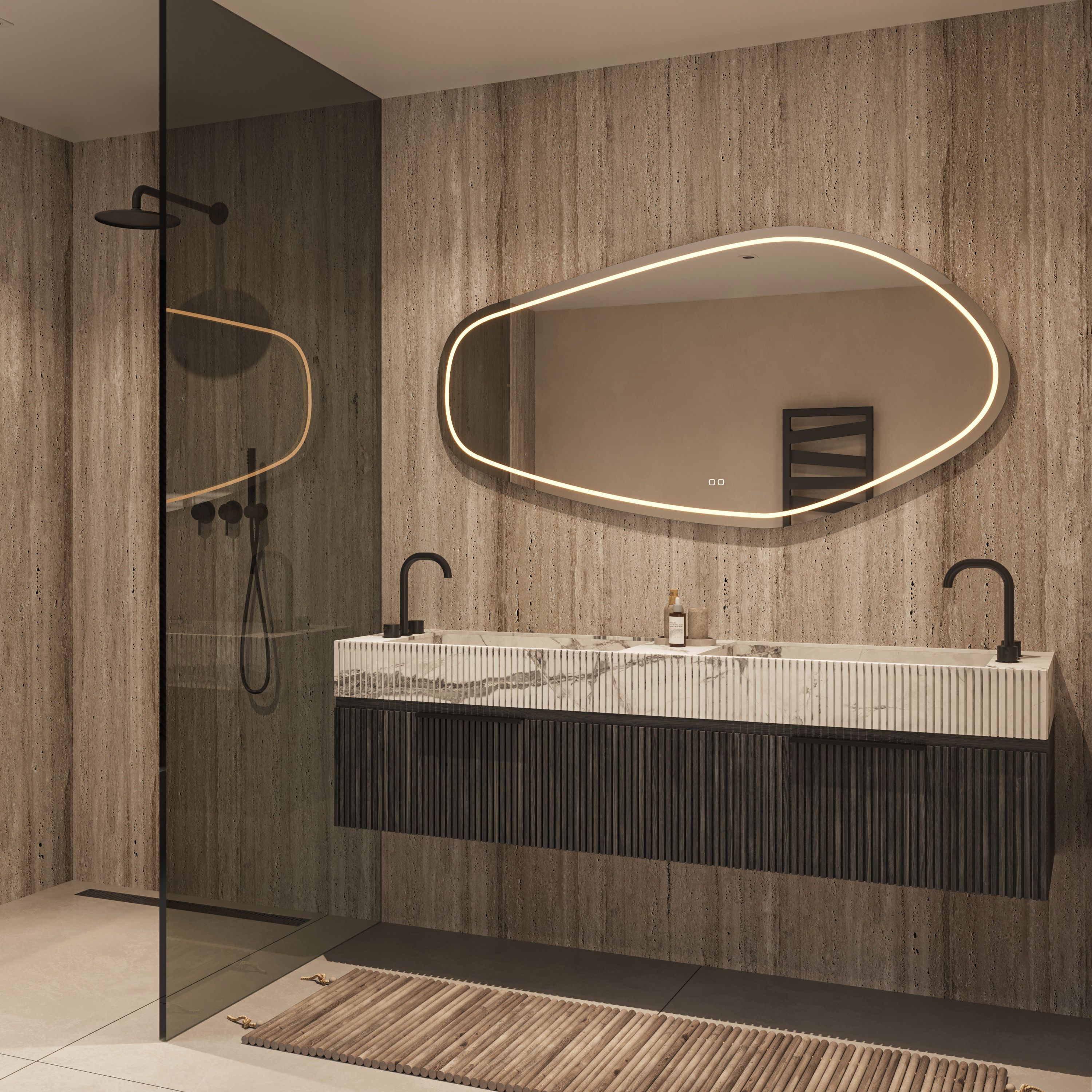Oppdag det revolusjonerende lysgjennom-speil-konseptet, der belysningen skinner gjennom speilet uten at lyskilden er synlig når det er slått av. Det er ikke bare et speil – det er en opplevelse som forvandler badet ditt til en oase av raffinement og modernitet.