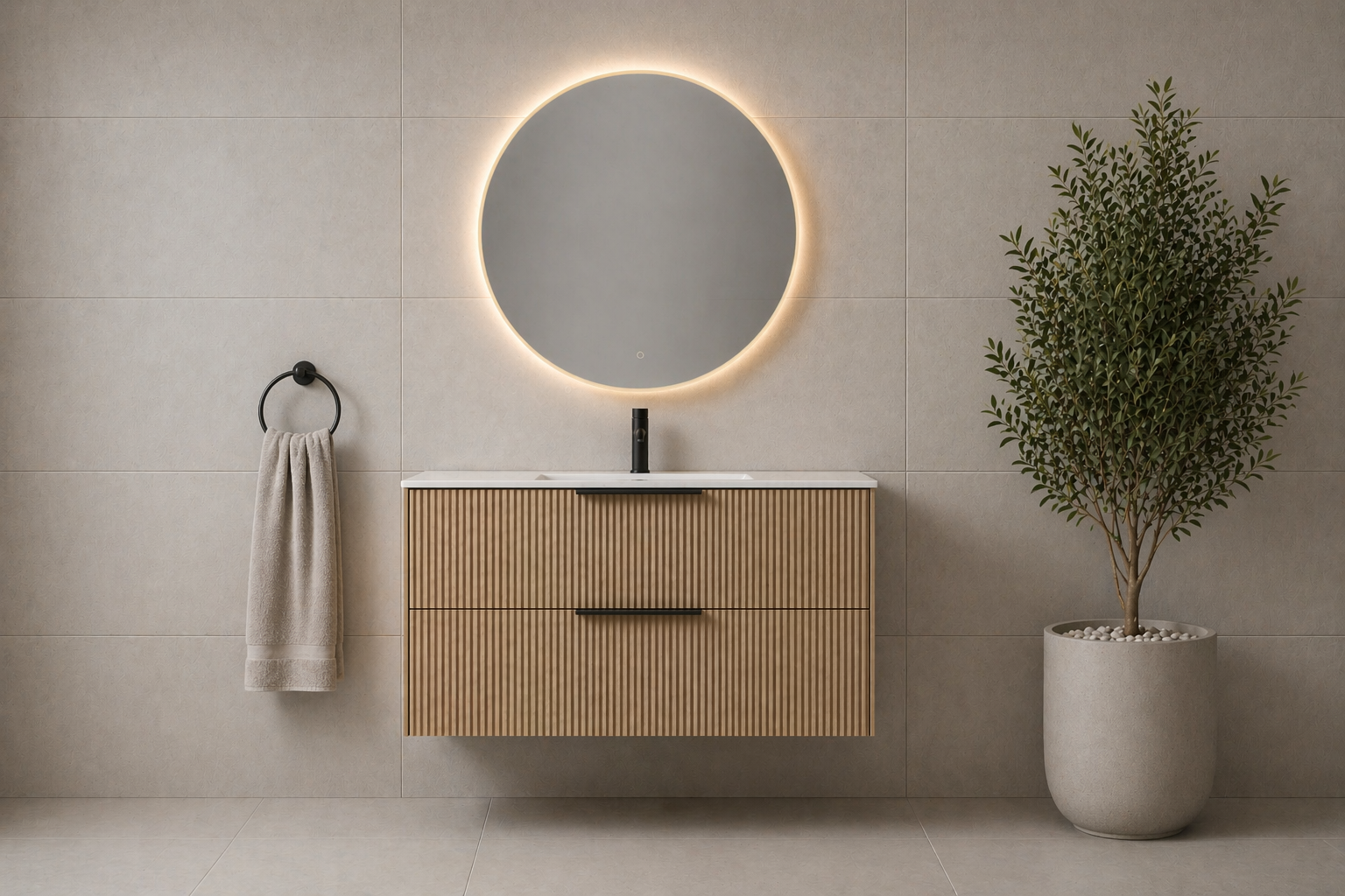 Servantskapene kommer i 60, 80, 100 og 120 cm bredde, og passer like godt i små og store baderom. Et høyskap på 35 cm gir ekstra oppbevaring uten å ta mye plass.