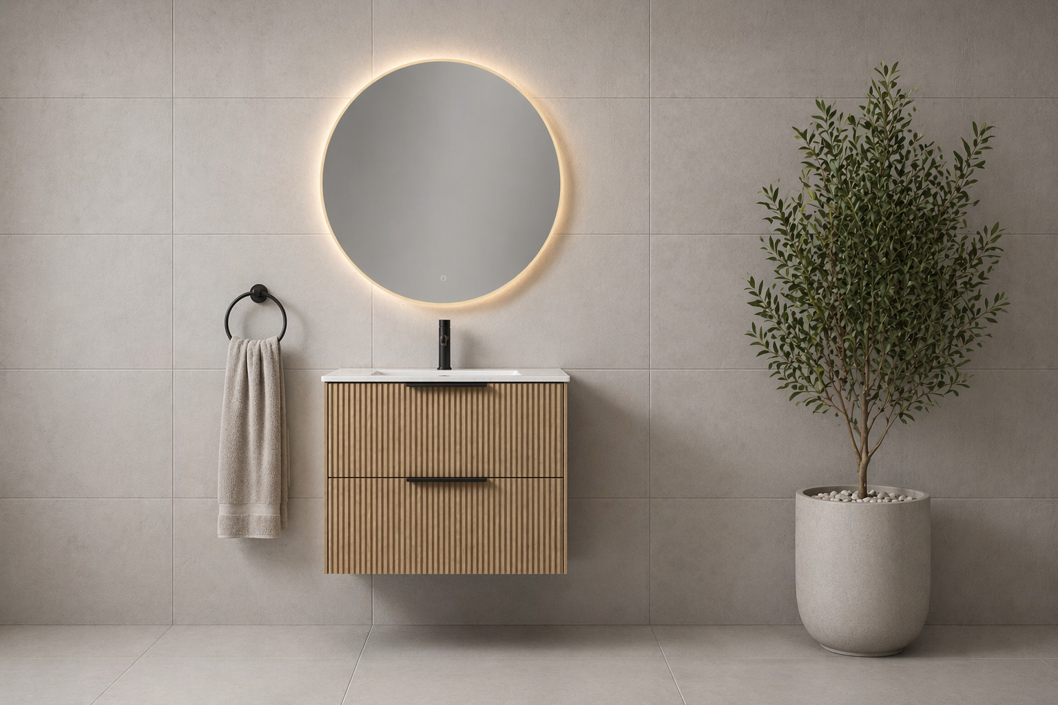 Servantskapene kommer i 60, 80, 100 og 120 cm bredde, og passer like godt i små og store baderom. Et høyskap på 35 cm gir ekstra oppbevaring uten å ta mye plass.