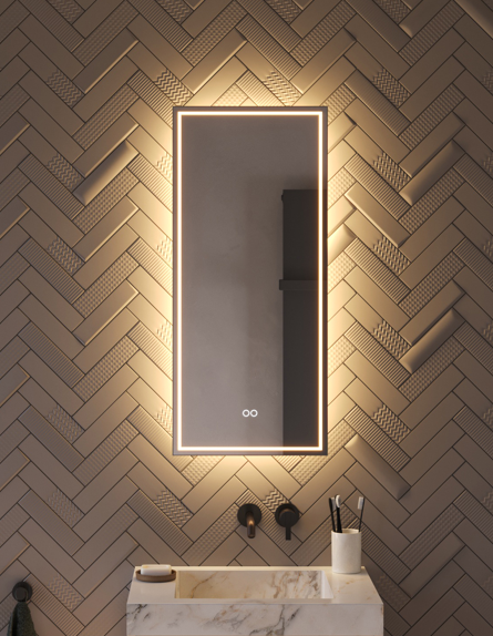 Det integrerte front og baklyset skaper en behagelig og eksklusiv atmosfære, samtidig som det gir optimalt lys til daglige rutiner. Med justerbar fargetemperatur fra 2700K til 6400K kan du enkelt tilpasse lyset – fra varmt og avslappende til klart og energigivende. Dimming og lysjustering styres intuitivt via touch.