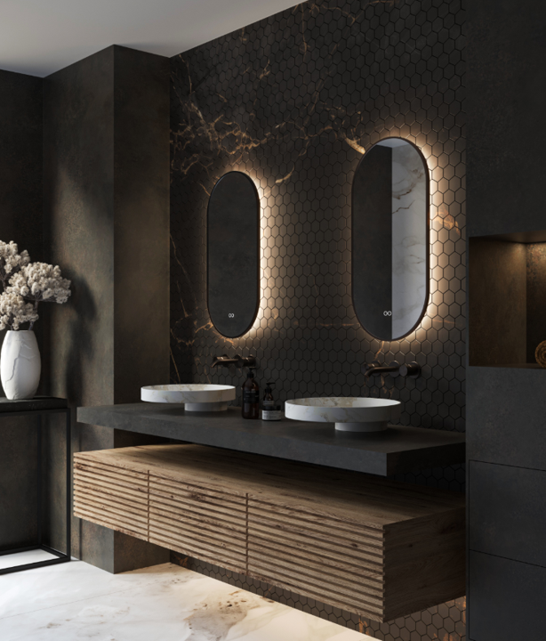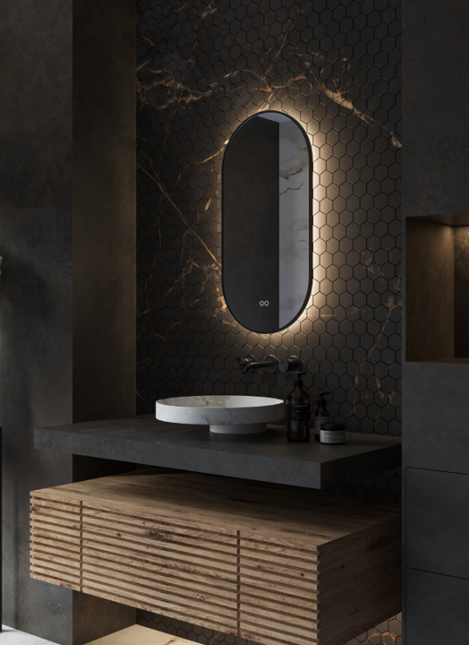 Det integrerte baklyset skaper en behagelig og eksklusiv atmosfære, samtidig som det gir optimalt lys til daglige rutiner. Med justerbar fargetemperatur fra 2700K til 6400K kan du enkelt tilpasse lyset – fra varmt og avslappende til klart og energigivende. Dimming og lysjustering styres intuitivt via touch.