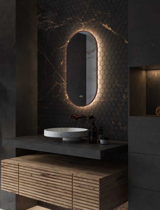 per stkSaga K8030 45x90 Børstet Kobber med Baklys – Eksklusiv Design og Smart Funksjonalitet