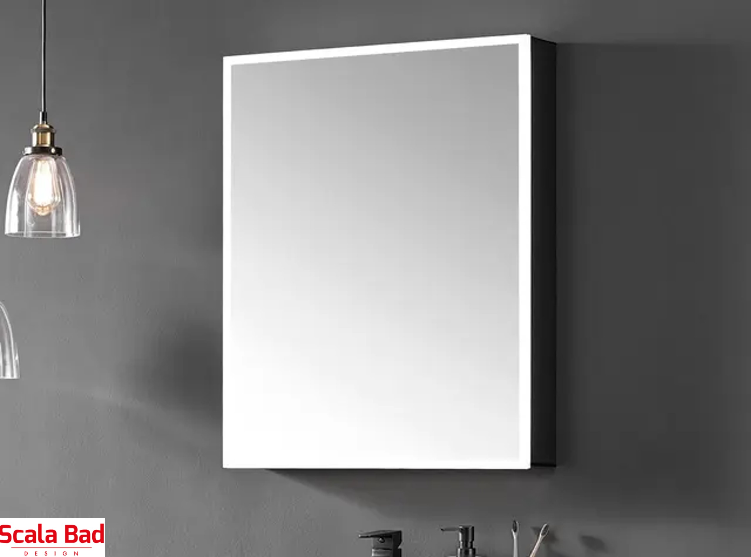 Tidsriktig sort speilskap med LED belysning. Vi har utviklet Lucca sort speilskap med speil på innsiden av dør, justerbare glasshyller og 2 x stikkontakter med USB. Lucca har LED overlys, underlys, belysning i topp i skapet og LED belysning rundt hele speilkanten. Lucca speilskap har integrert Bluetooth™ og høyttalere.