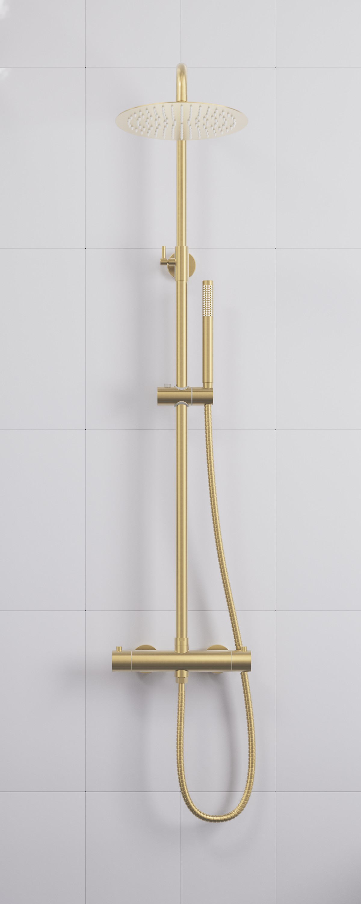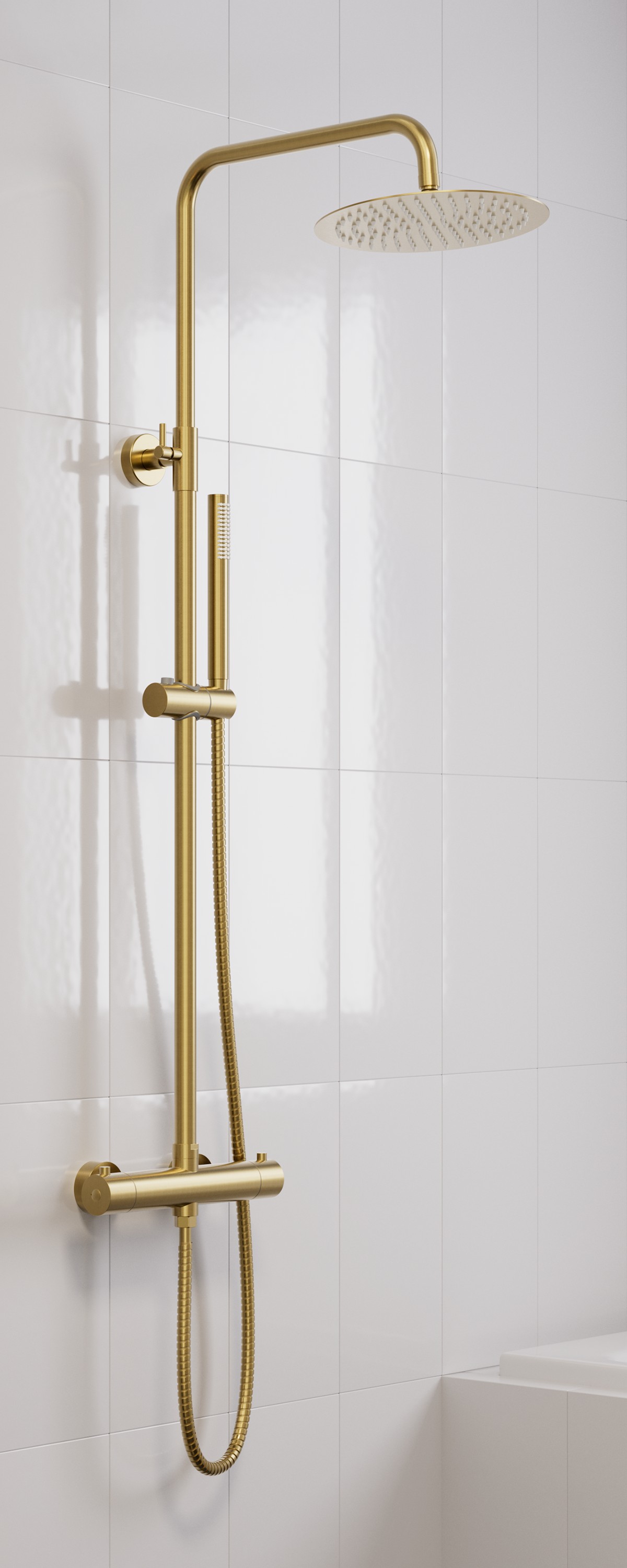 Børstet Champagne - Oppgrader badet med en eksklusiv takdusj som kombinerer stil, funksjonalitet og kvalitet.