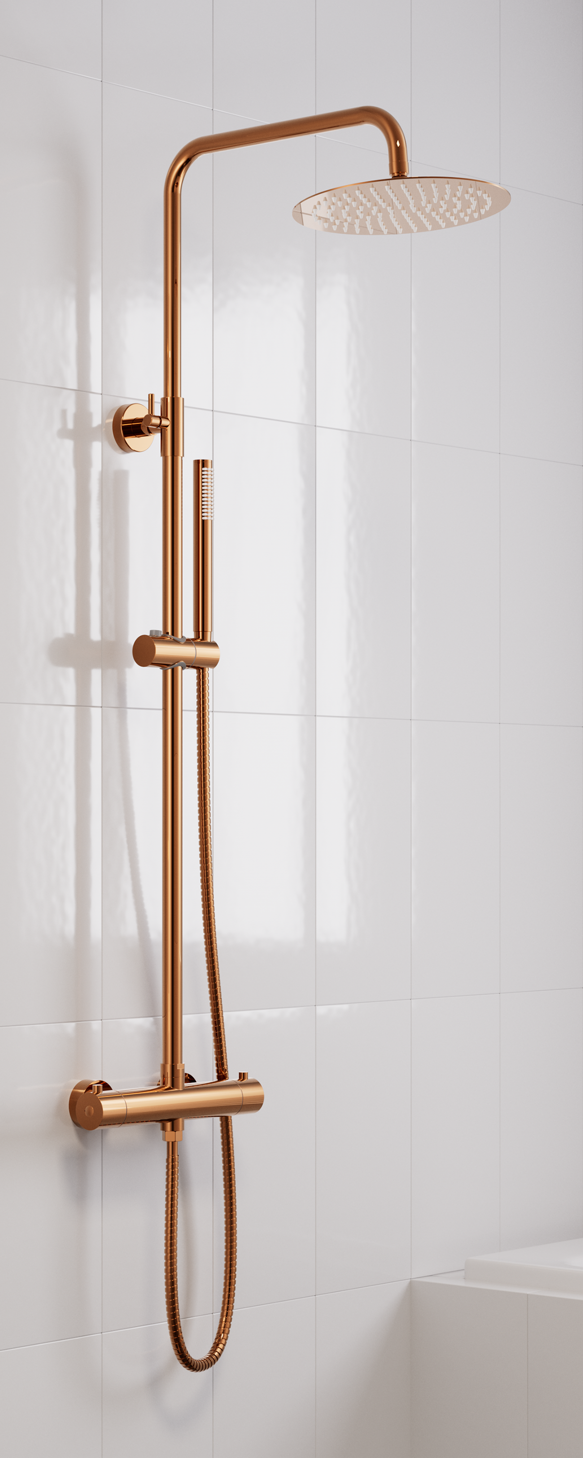 Polert Kobber - Oppgrader badet med en eksklusiv takdusj som kombinerer stil, funksjonalitet og kvalitet.