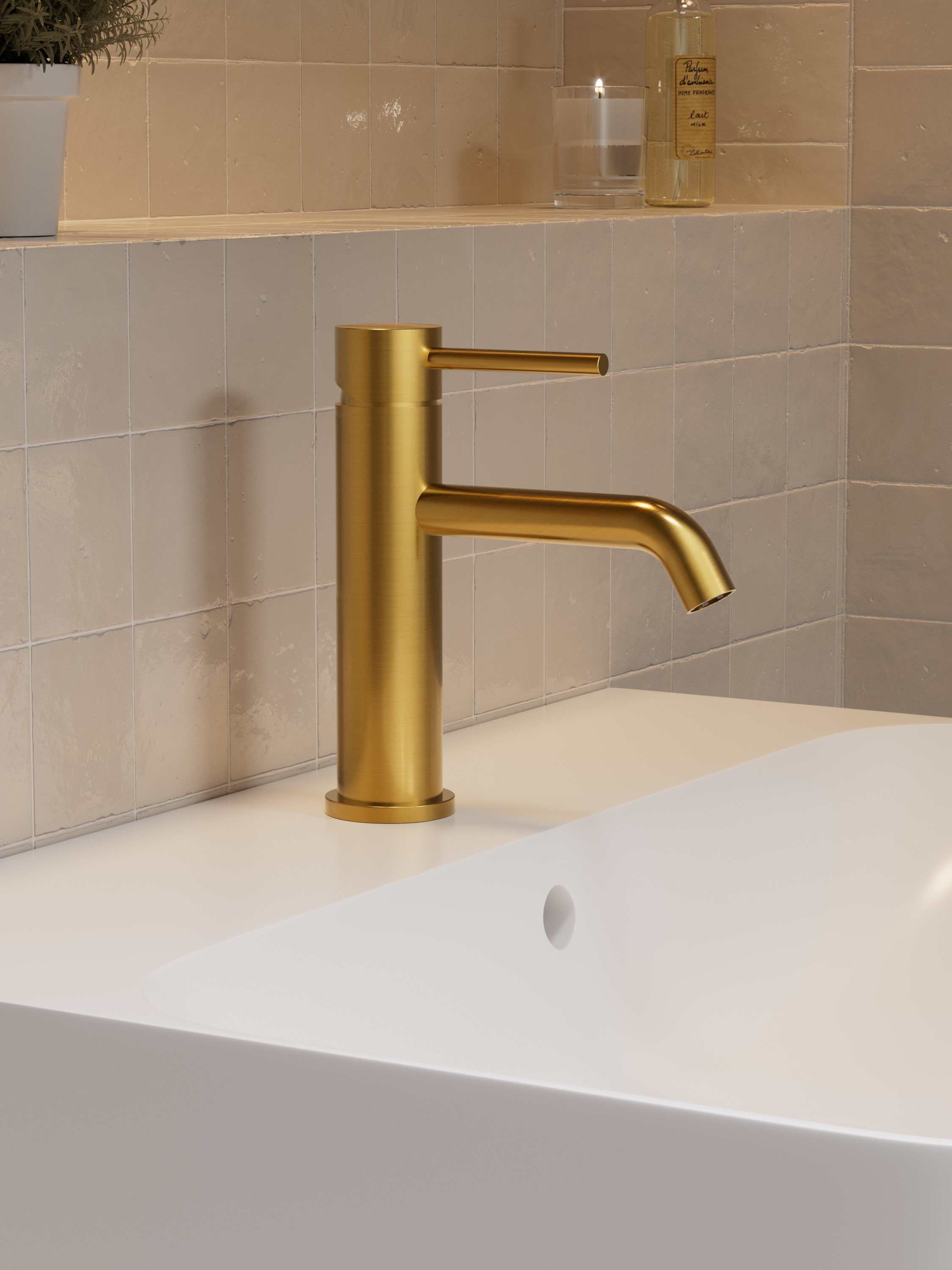 SMART - Børstet Gull er en elegant servantkran i rustfritt stål, som kombinerer moderne design med høy kvalitet.